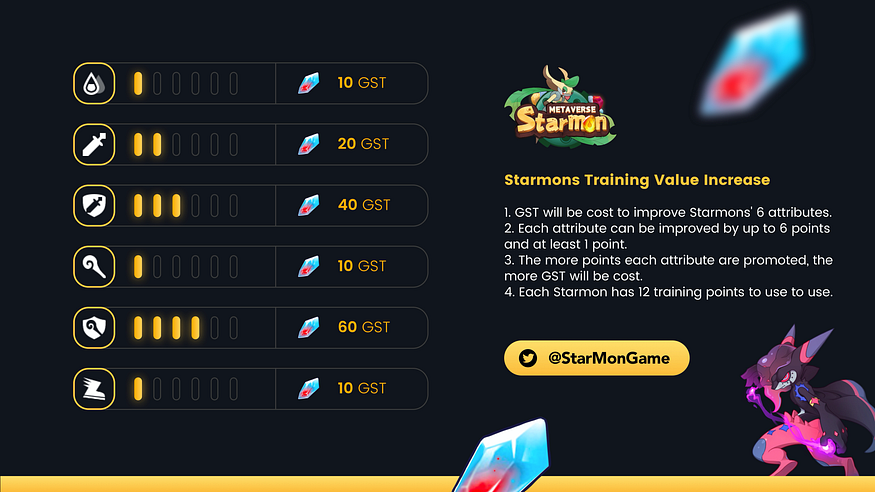 1. Starmon’s attributes can be trained by players.