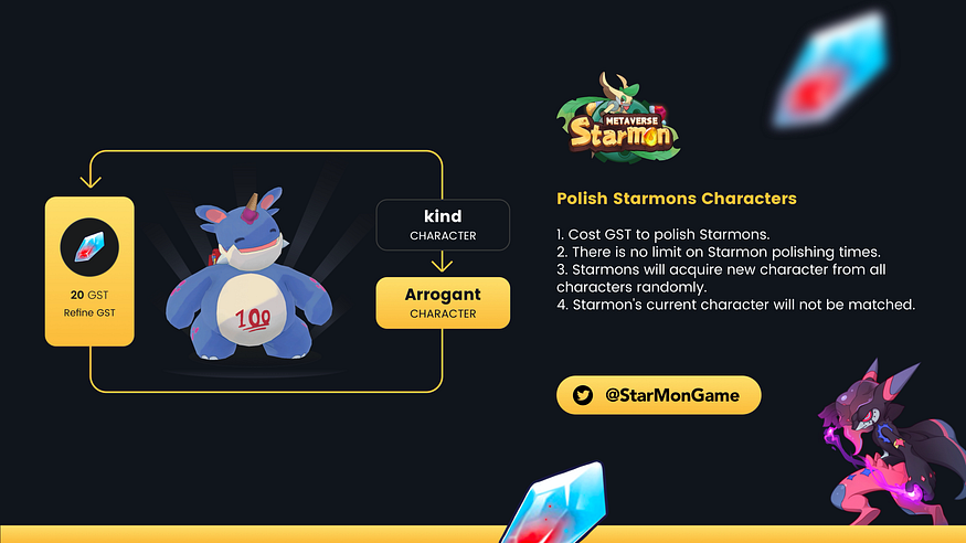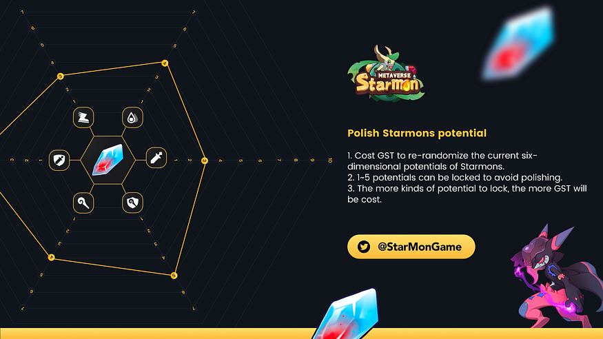 We add more flexibilities on the potential polish system to meet each player’s expectation. Although the lock-in system may disrupt the fairness of the game, more GST will be consumed during the upgrade which will benefit all StarMon players.